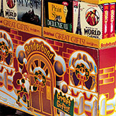 Temporary and seasonal pallet displays move product fast—especially when there is eye-catching graphics and a great offer. JDA worked with Brøderbund on several titles for seasonal gifts, rebates, and a two-for-one promotion. The key to all of these displays is that they are easy for the store staff to assemble.